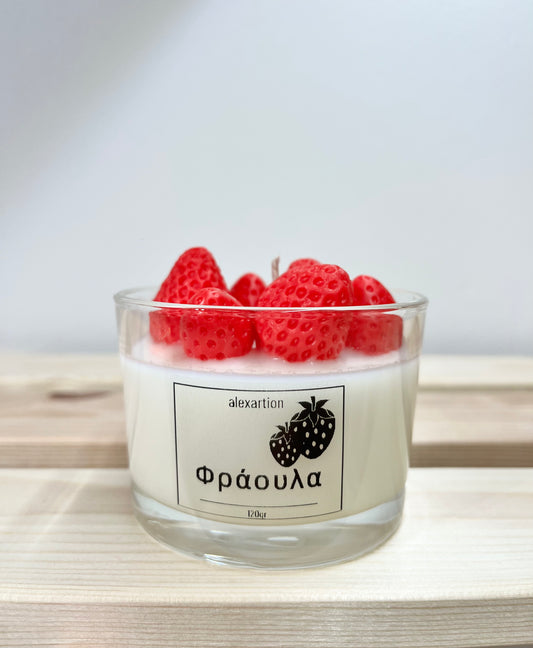 Strawberry Φυτικό κερί σόγιας 120gr σε γυάλινο ποτήρι